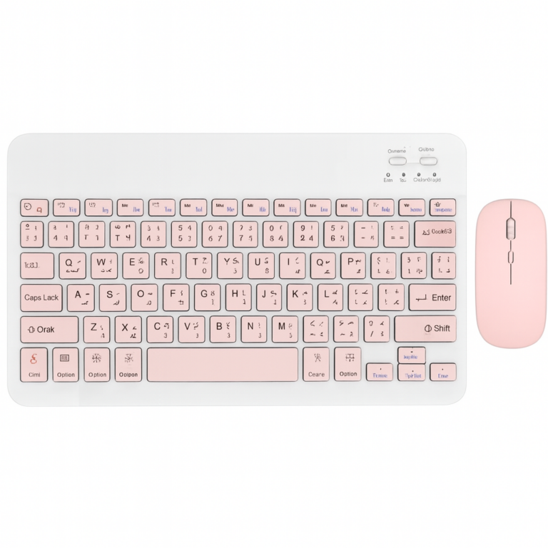 كيبورد وماوس لاسلكي نحيف سهل الحمل يدعم جميع الأجهزة