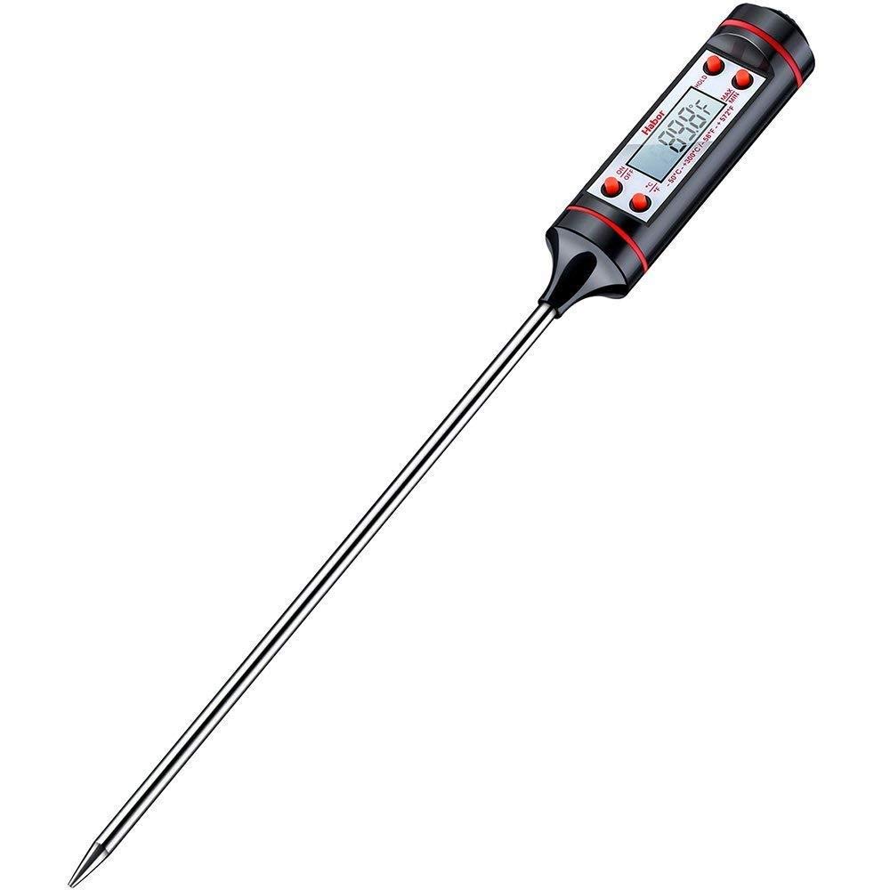 - سهل الاستخدام، ببساطة اسحب المسبار الطويل للغاية المقاوم للصدأ، وأدخليه في طعامك أو سائلك واقرأ درجة الحرارة؛ يتم إيقافالتشغيل التلقائي بعد 10 دقائق، ويطيل عمر بطاريتك؛ (استخدم مقياس الحرارة في محلول أورميكان مغلق!)