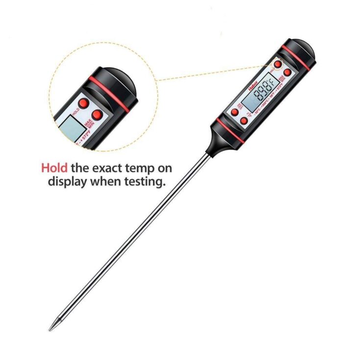 - 【مسبار طويل】يحافظ مقياس الحرارة المخصص للطعام هذا الذي يبلغ طوله 14.78 سم من حرق يديك أثناء القياس ويساعدكعلى الكشف عن درجة حرارة اللحم الأساسية، مثالي للديك الرومي، والخروف المشوي، وصنع الخبز، وصناعة الحلوى، والماء المغلي،والحليب الساخن وماء الاستحمام إيروميساين.
