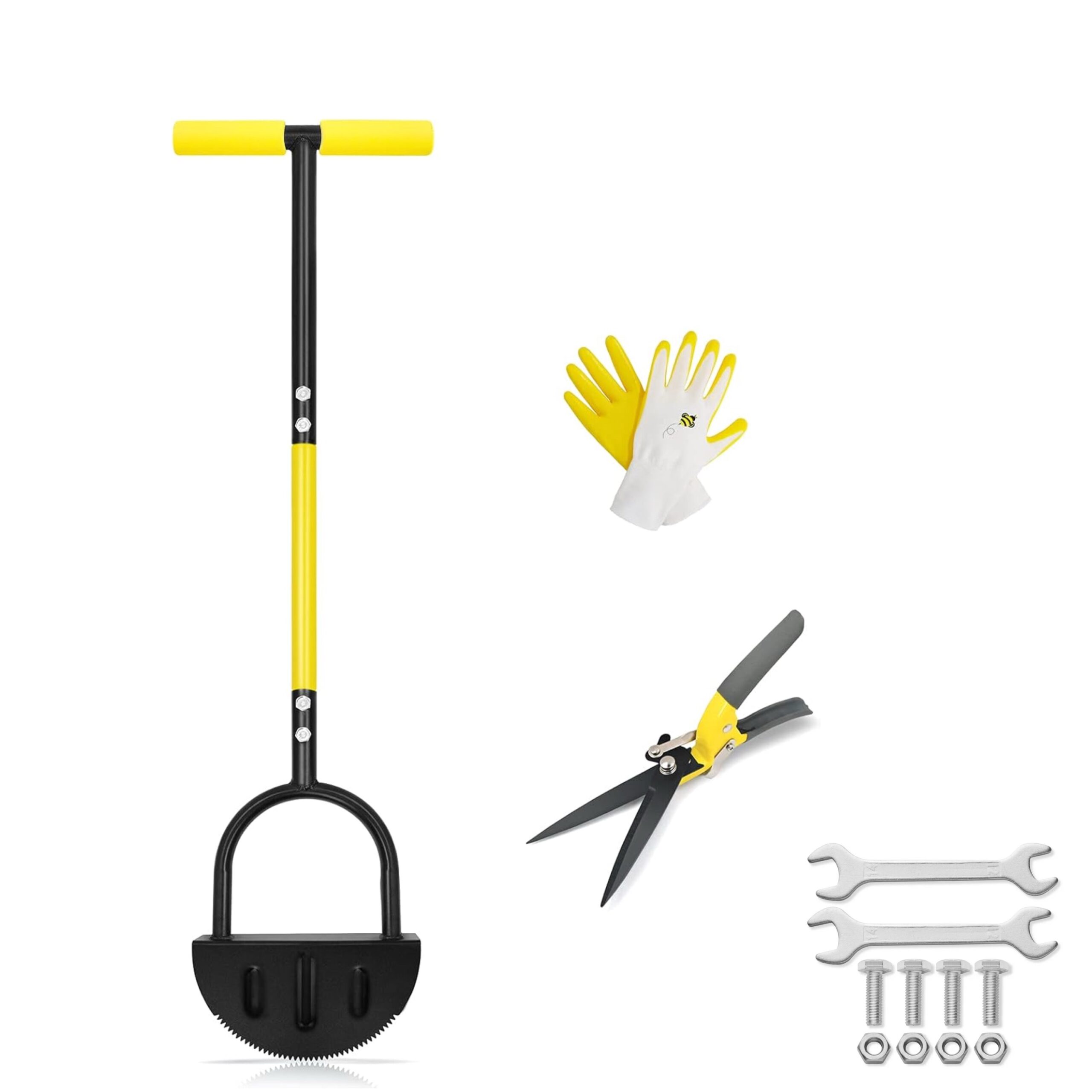 أداة تشذيب حواف العشب اليدوية نصف قمرية من بايهاجرن، رأس مسنن، مقبض فولاذي طويل، تشمل مقص وكفوف، سباين وبراغي سباين عدد 2، برغي ونت عدد 8، مناسبة للحدائق والأرصفة وأحواض الزهور