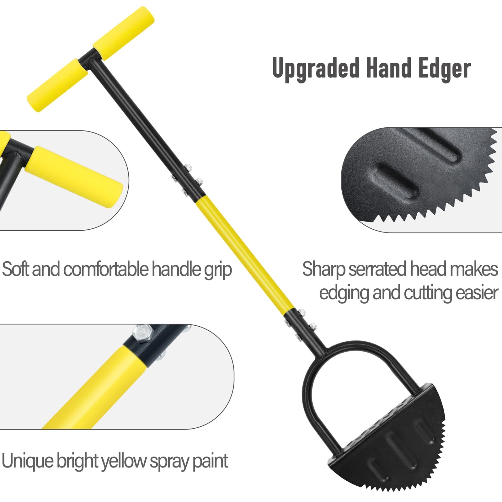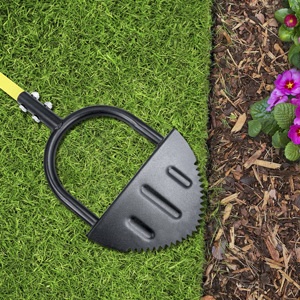 رأس الأداة الهلالي مزود بأسنان حادة تركز القوة على أقصى نقطة، لتسهيل إدخالها في العشب والتربة، مع توفير الطاقة وتسريع العمل بدقة وسهولة، مما يجعل تشذيب حواف الحدائق أسرع وأكثر كفاءة.