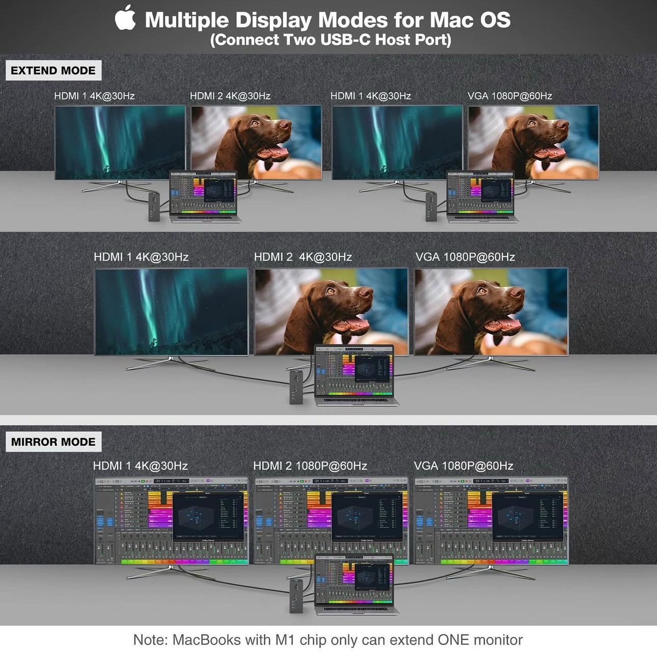 قاعدة توصيل USB-C ثلاثية الشاشة HOPDAY 16 في 2 لأجهزة MacBook Pro/Air