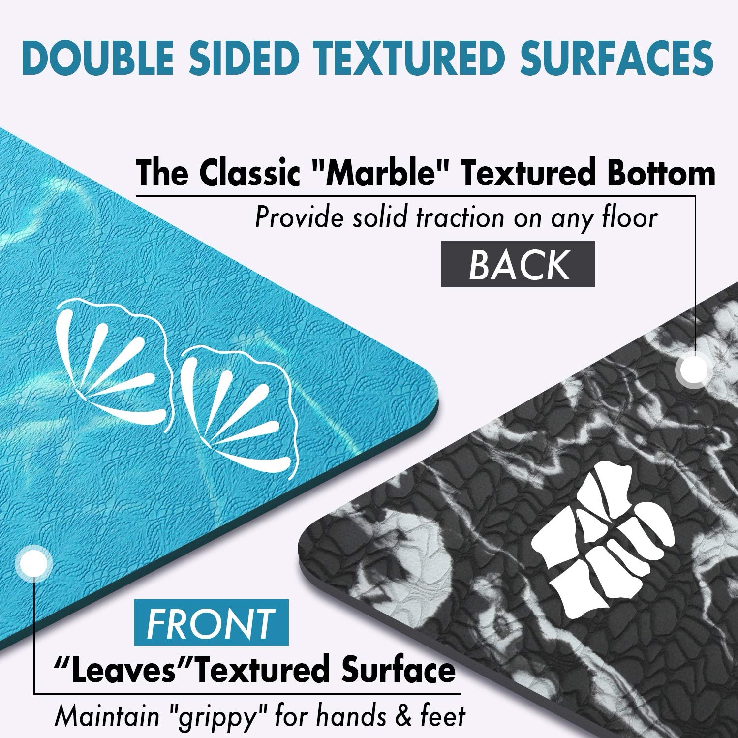 تصميم مزدوج الطبقة مانع للانزلاق يمنحك توازنًا وثباتًا عاليين أثناء التمارين. القاعدة السفلية المتموجة تثبّت البساط على الأرض، والسطح العلوي الناعم يمنع انزلاق اليدين والقدمين حتى في اليوغا الساخنة.