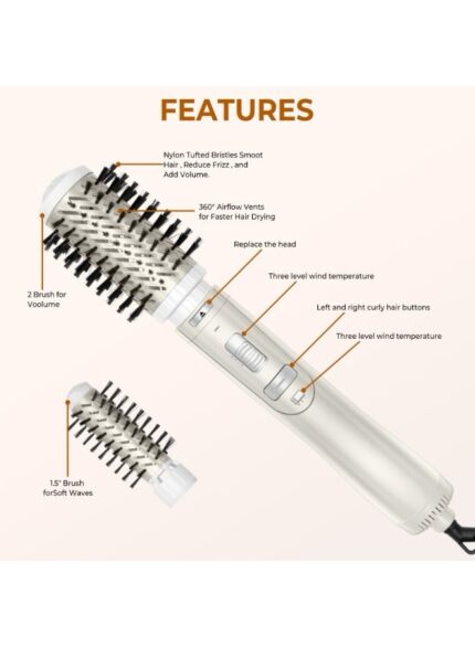 فرشاة لجميع أنواع الشعر: تحتوي فرشاة الشعر ذات فتحات تهوية على شعيرات ناعمة تدلك فروة الرأس وتتمتع بمرونة جيدة.