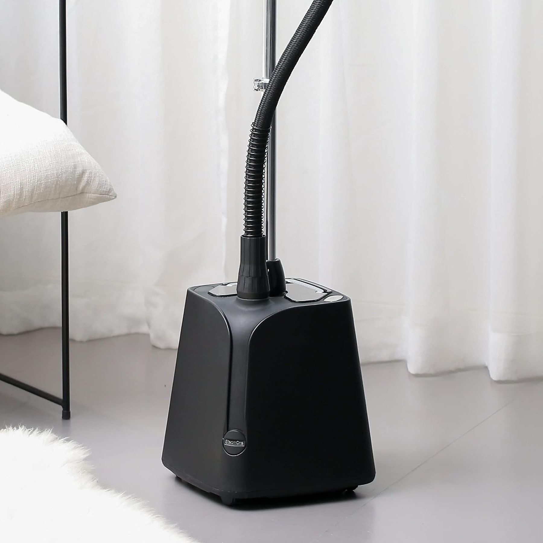 يأتي بستاند ألومنيوم تلسكوبي قابل للتعديل، قاعدة ثابتة سهلة الحركة، خرطوم بخار طويل، ومقبض من الفولاذ المقاوم للصدأ مصمم لتقليل التكثف أثناء التشغيل.