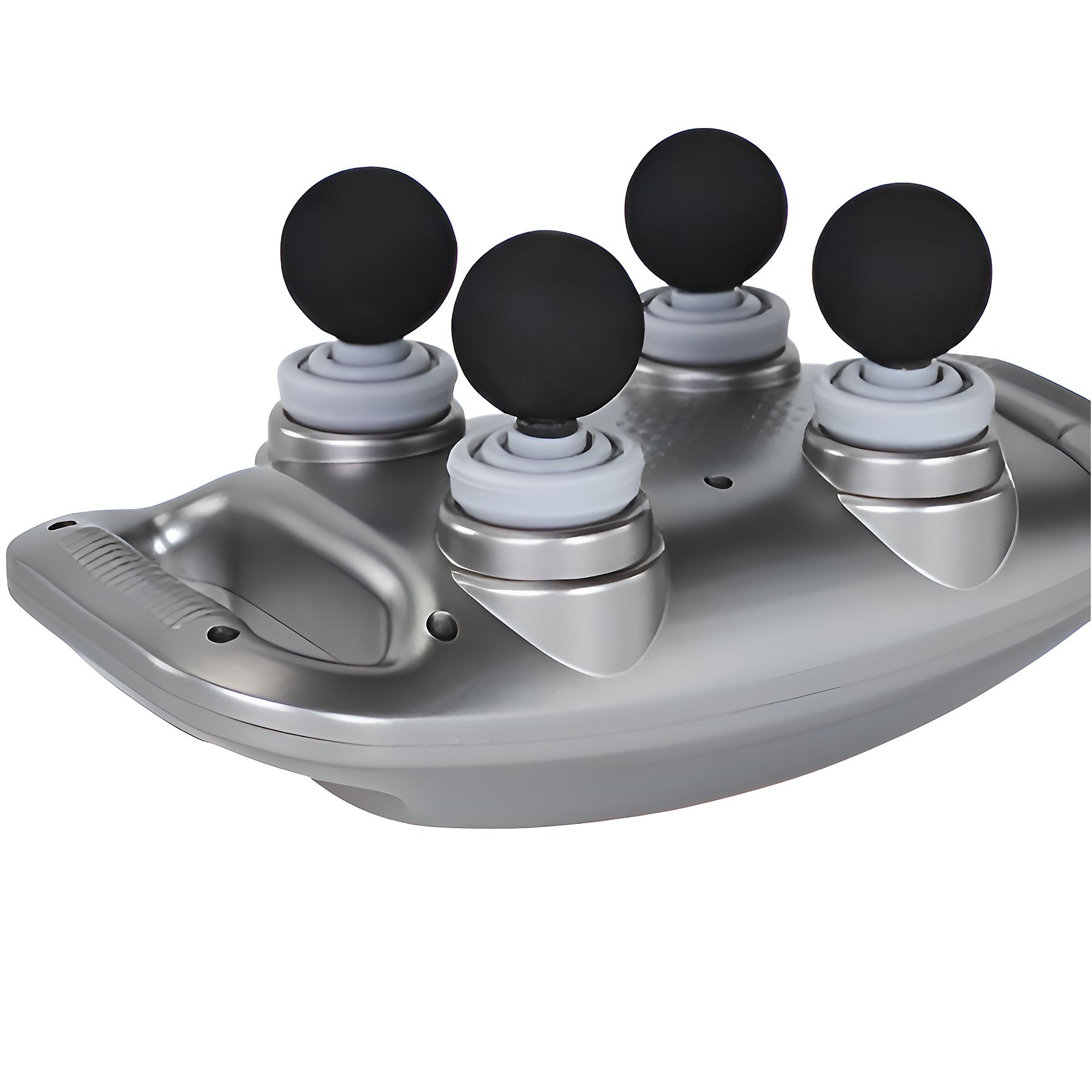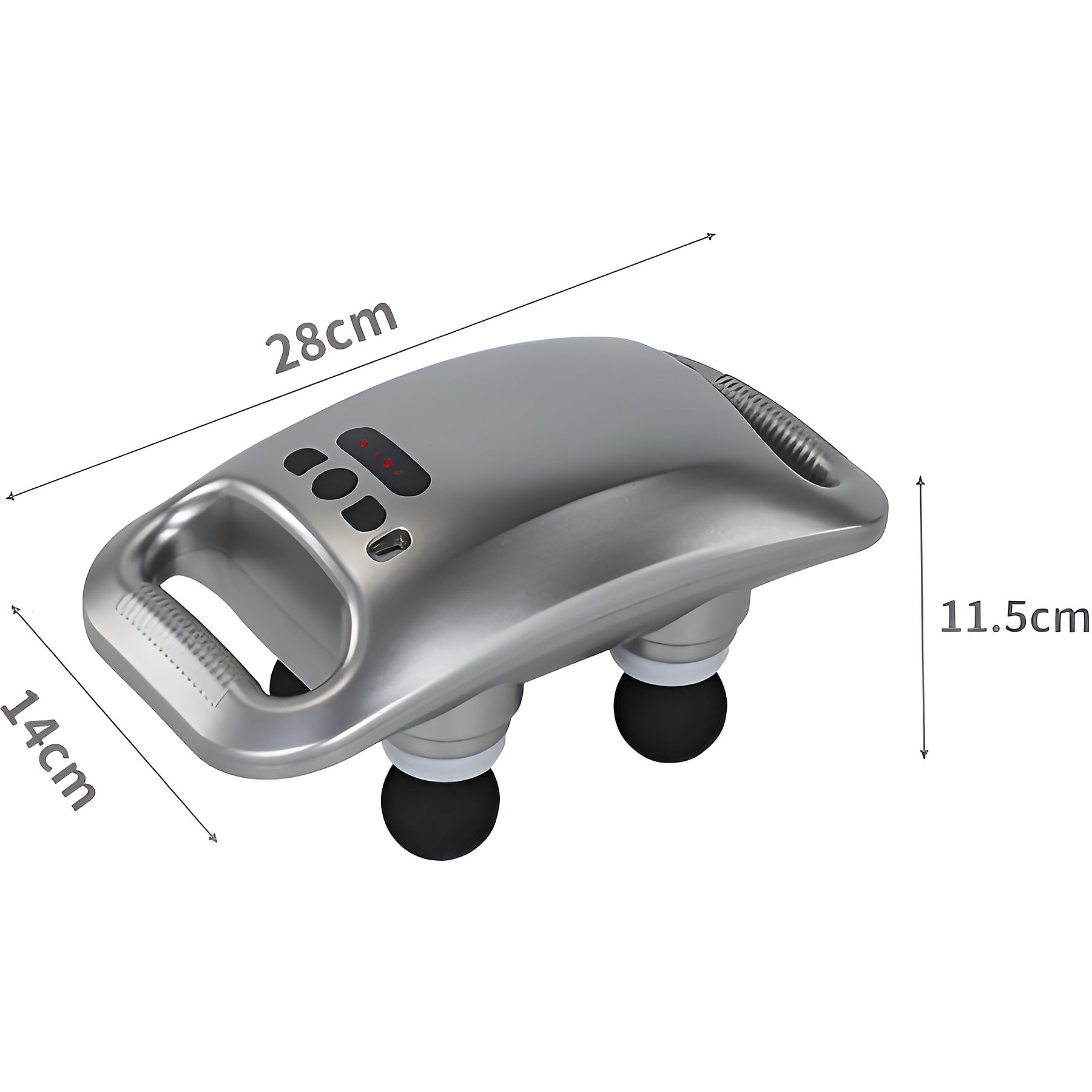 الرؤوس الأربعة تعمل معاً لتقديم تدليك مكثف بعمق أكبر وتحسين الدورة الدموية وزيادة مرونة العضلات مما يجعله خياراً مناسباً لمن يعانون من التعب أو الشد العضلي المستمر.