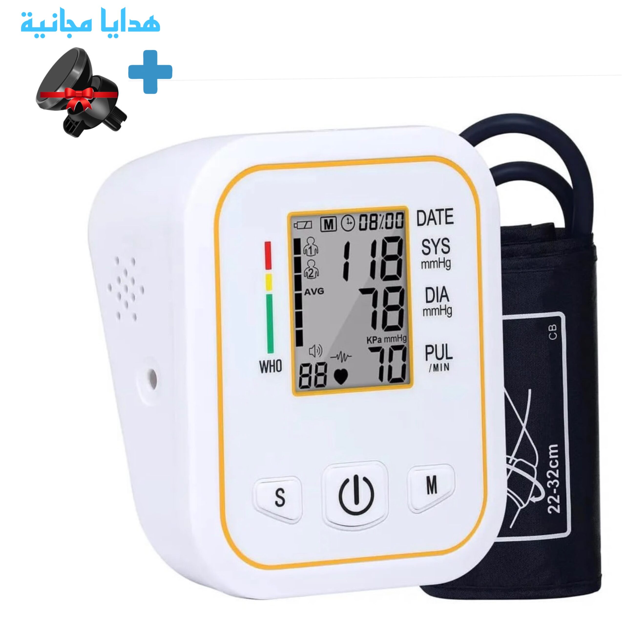 •سوار مريح يناسب محيط الذراع 22-48 سم مع تقنية ضغط ذكية تقلل الانزعاج.
