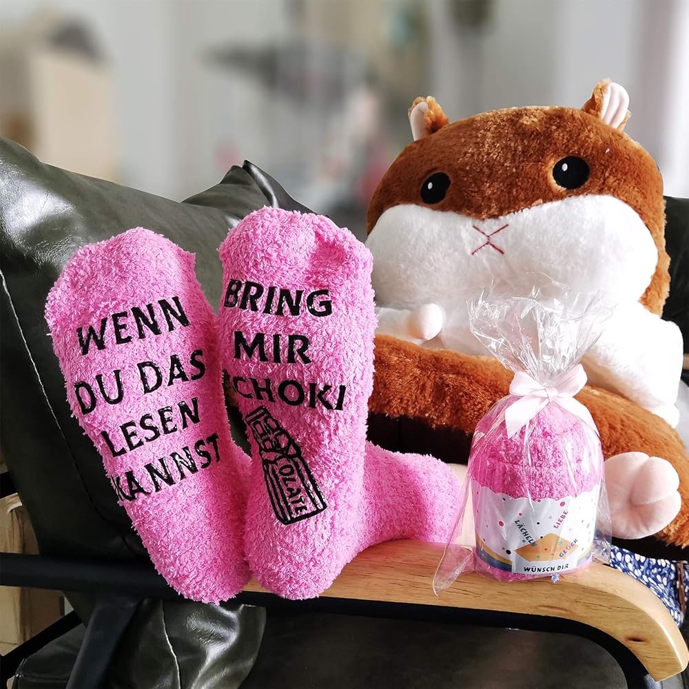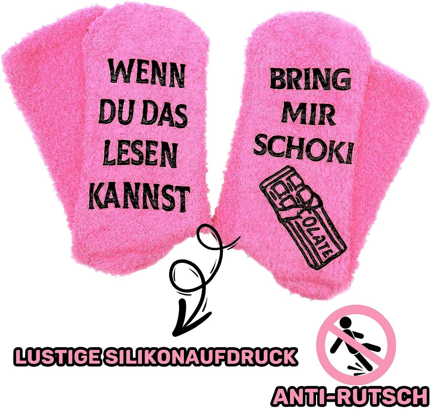 تأتي بطباعة سيليكون غير قابلة للانزلاق بعبارة مضحكة تضيف لمسة طريفة ( احضر لي بعض الشوكلاته)وتمنح الجورب شخصية فريدة تجعلها محببة للجميع.