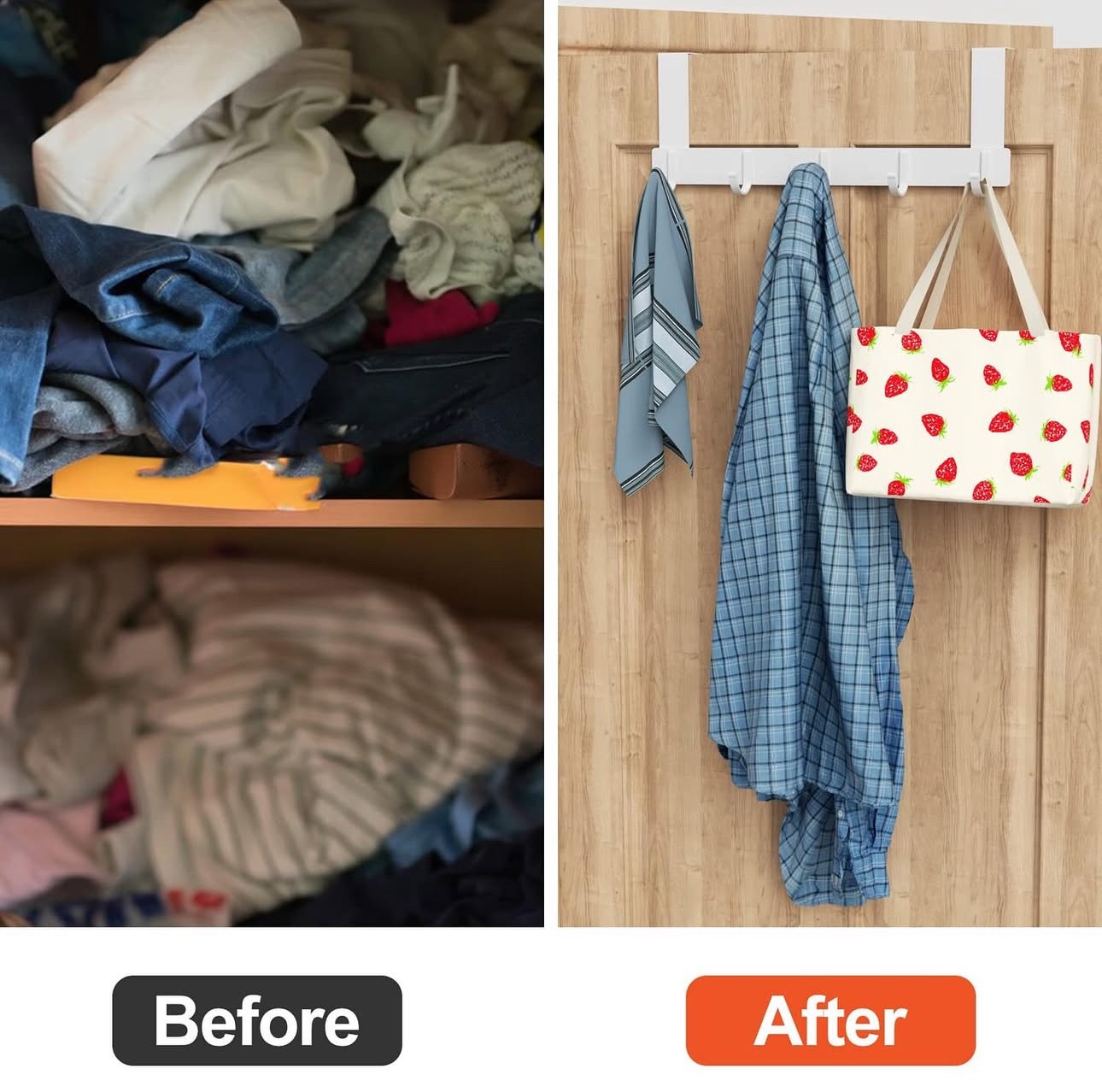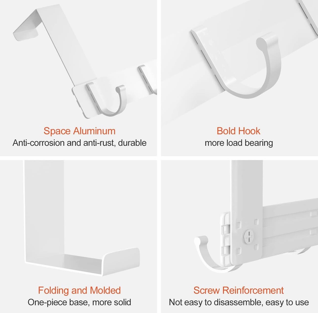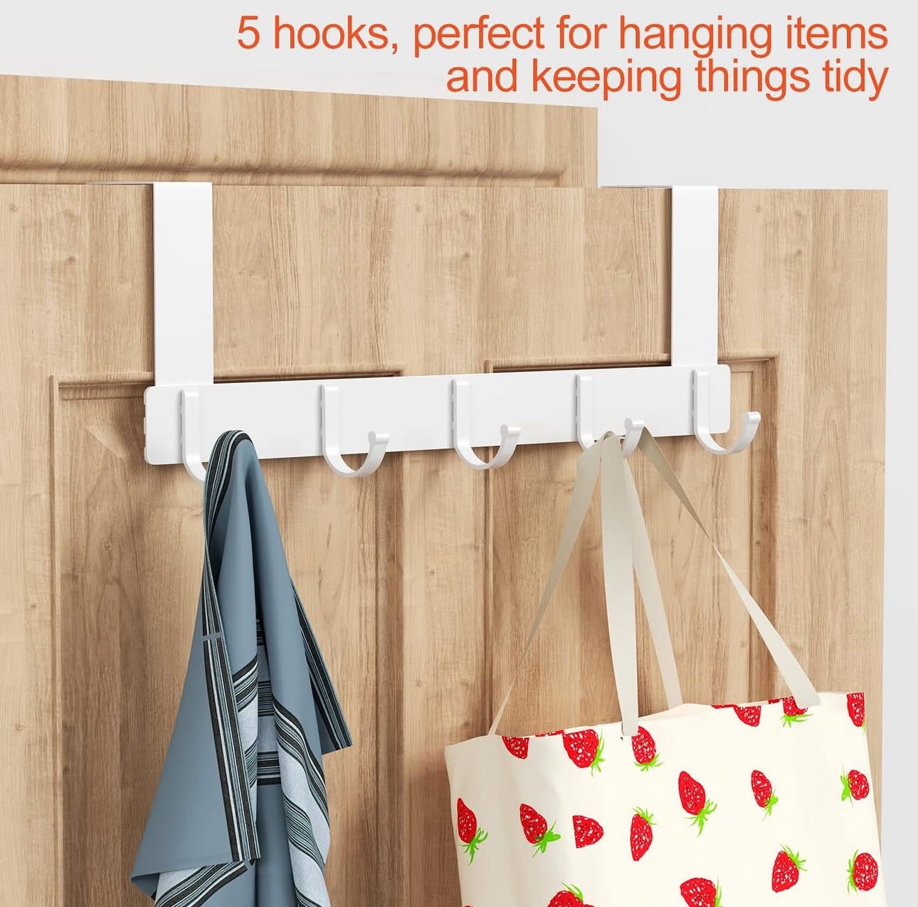 حامل خطافات من Newaner مزود بخمسة خطافات، سهل التركيب بدون حفر، يحمي الأبواب من الخدوش ويضيف لمسة عملية وعصرية لأي غرفة في المنزل