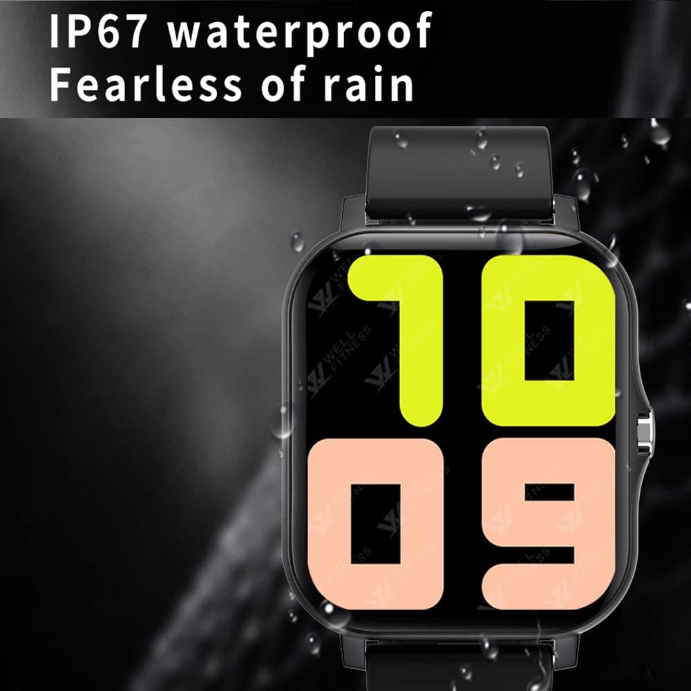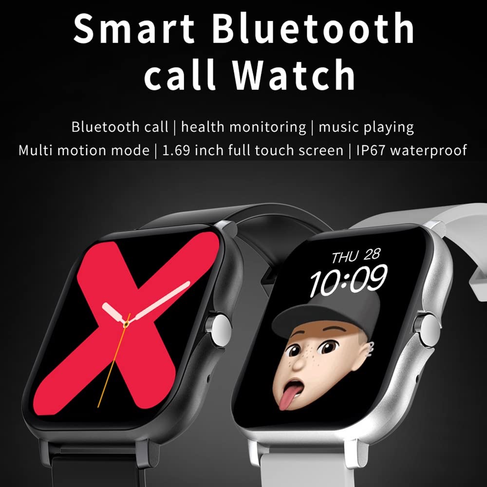 ساعة ذكية بشاشة لمس 1.69 بوصة، تدعم نظامي Android/iOS. تتميز بـ 8 أوضاع رياضية، عداد خطوات، مراقبة مستمرة لمعدل ضربات القلب والنوم. بطاريتها تدوم حتى 7 أيام، وهي مقاومة للماء بمعيار IP68.