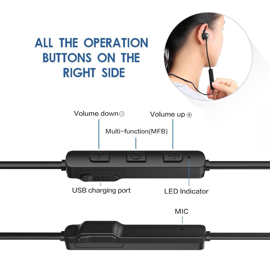 • 3 خطافات أذن لتثبيت مريح
