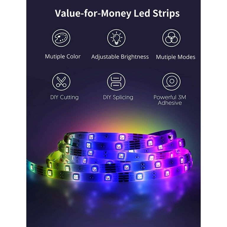 ‎شريط إضاءة LED RGB يوفر أجواء رائعة بفضل ألوانه المتعددة وأنماط التحكم المتنوعة، يأتي بطول 10 أمتار مع لاصق قوي وتركيب سهل، مناسب لغرف النوم والألعاب ويمنح إضاءة مميزة تدوم طويلًا.