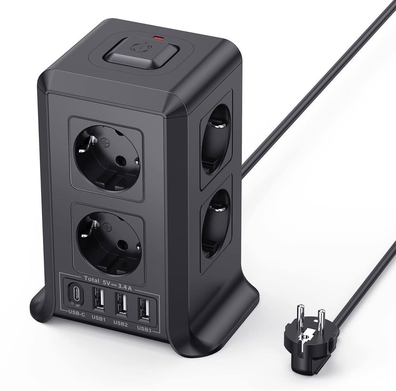 •شريط طاقة 12 في 1: 8 منافذ تيار متردد + 3 منافذ USB-A (5 فولت/2.4أ) + 1 منفذ USB-C (5 فولت/3.1أ) للشحن السريع.