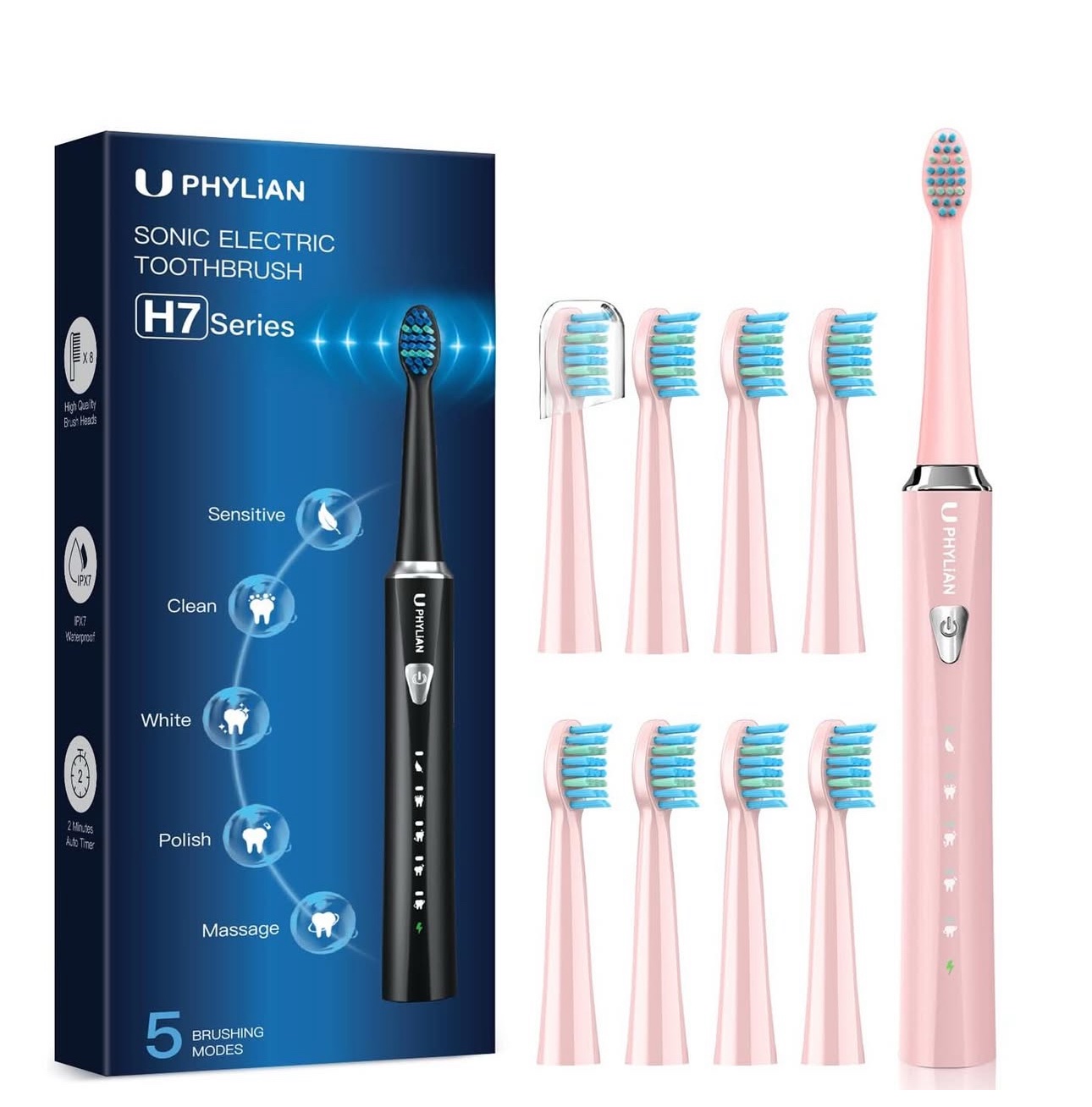 فرشاة أسنان كهربائية سونيك من فيليان مع 8 رؤوس و5 أوضاع تنظيف
