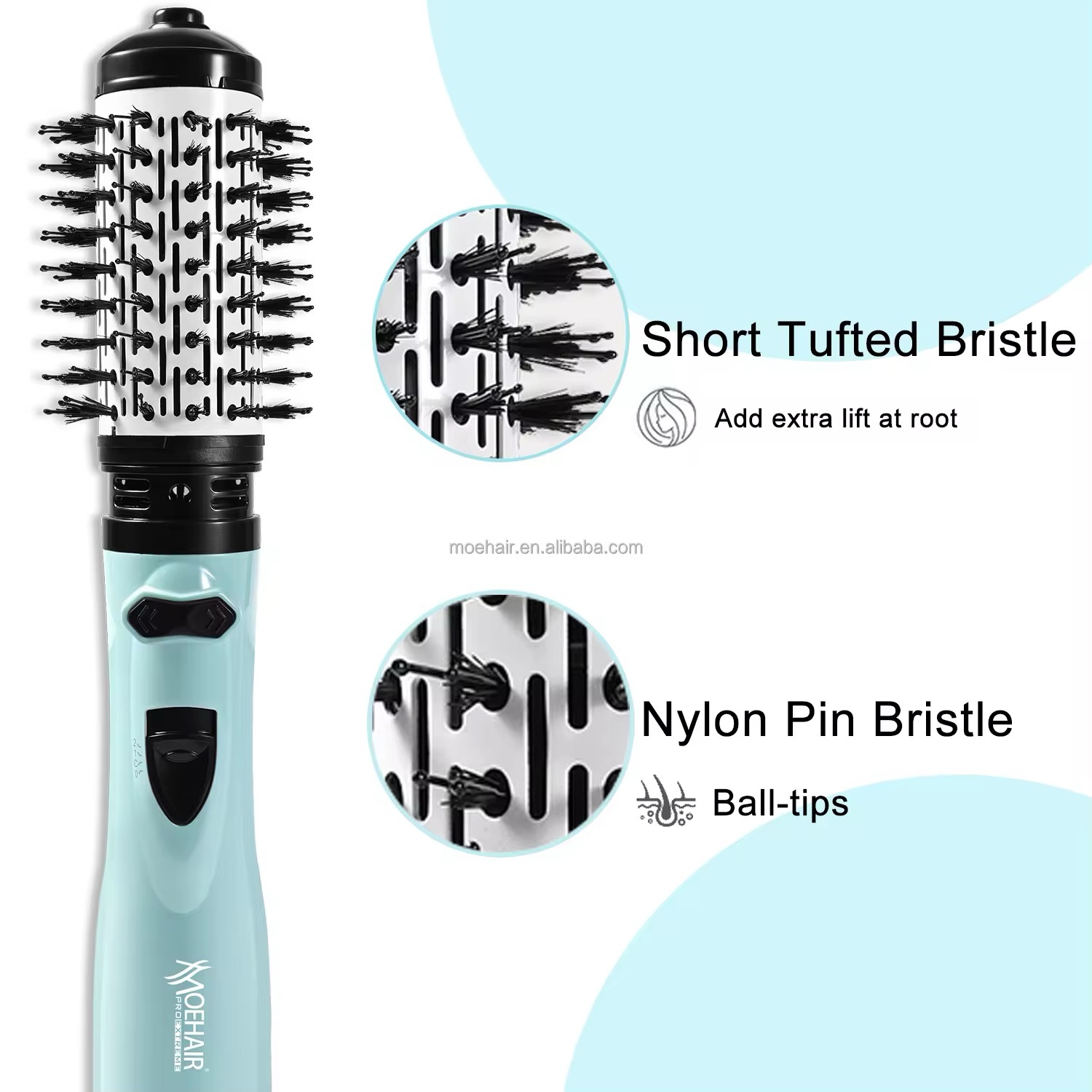 فرشاة تجفيف دوارة احترافية بقوة 1200 واط من موهير MO-7153، تجمع بين مجفف ومصفف شعر في جهاز واحد. تحتوي على رؤوس قابلة للتبديل، وتكنولوجيا أيونية، وتوزيع حراري متساوٍ، لتجفيف سريع وتصفيف مثالي دون تلف أو جفاف للشعر.