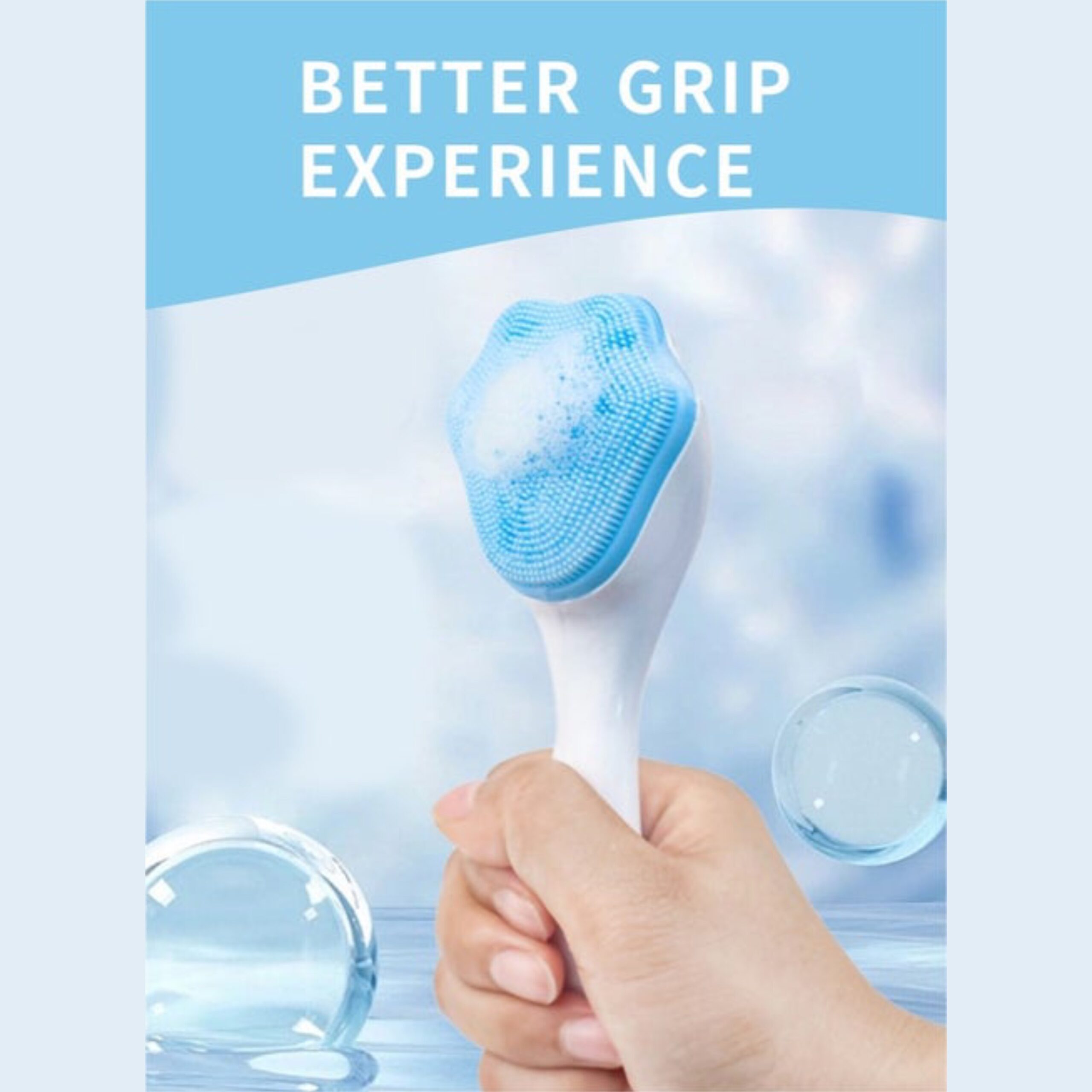 شعيرات سيليكون ناعمة ومرنة مصممة لتناسب ملامح الوجه، تُنتج رغوة غنية بسرعة عند استخدام الغسول، مع تقشير لطيف يساعد على تنظيف المسام دون التسبب بتهيج البشرة.