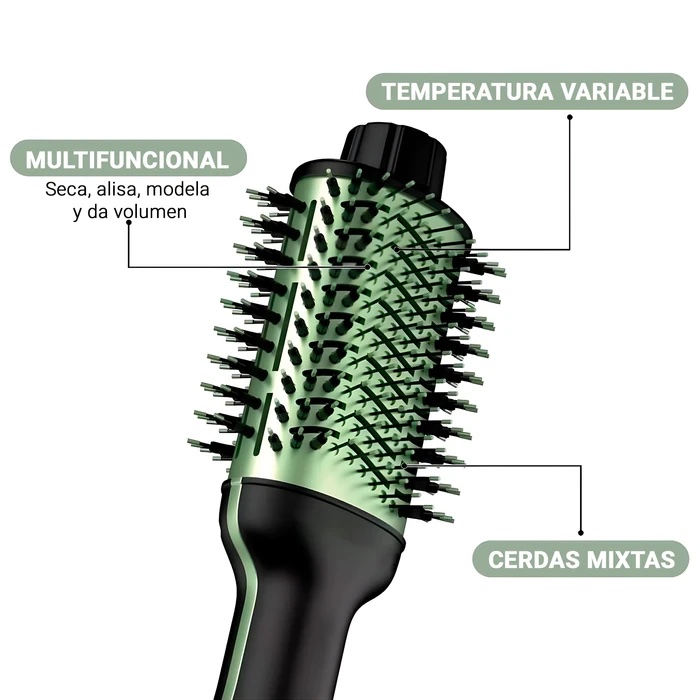 • فرشاة مجفف شعر 2 في 1 بتقنية Avocado Infusion لترطيب وتنشيط الشعر.