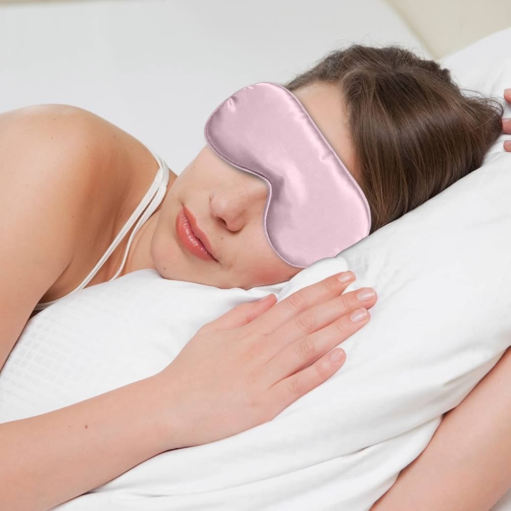 قناع نوم حريري ناعم معتم من الجانبين، مزوّد بحزام قابل للتعديل ليناسب جميع الأحجام. خفيف الوزن ومضاد للحساسية، يوفر تعتيماً كاملاً للضوء. مثالي للسفر، المنزل، الطيران، القطار، والتأمل.