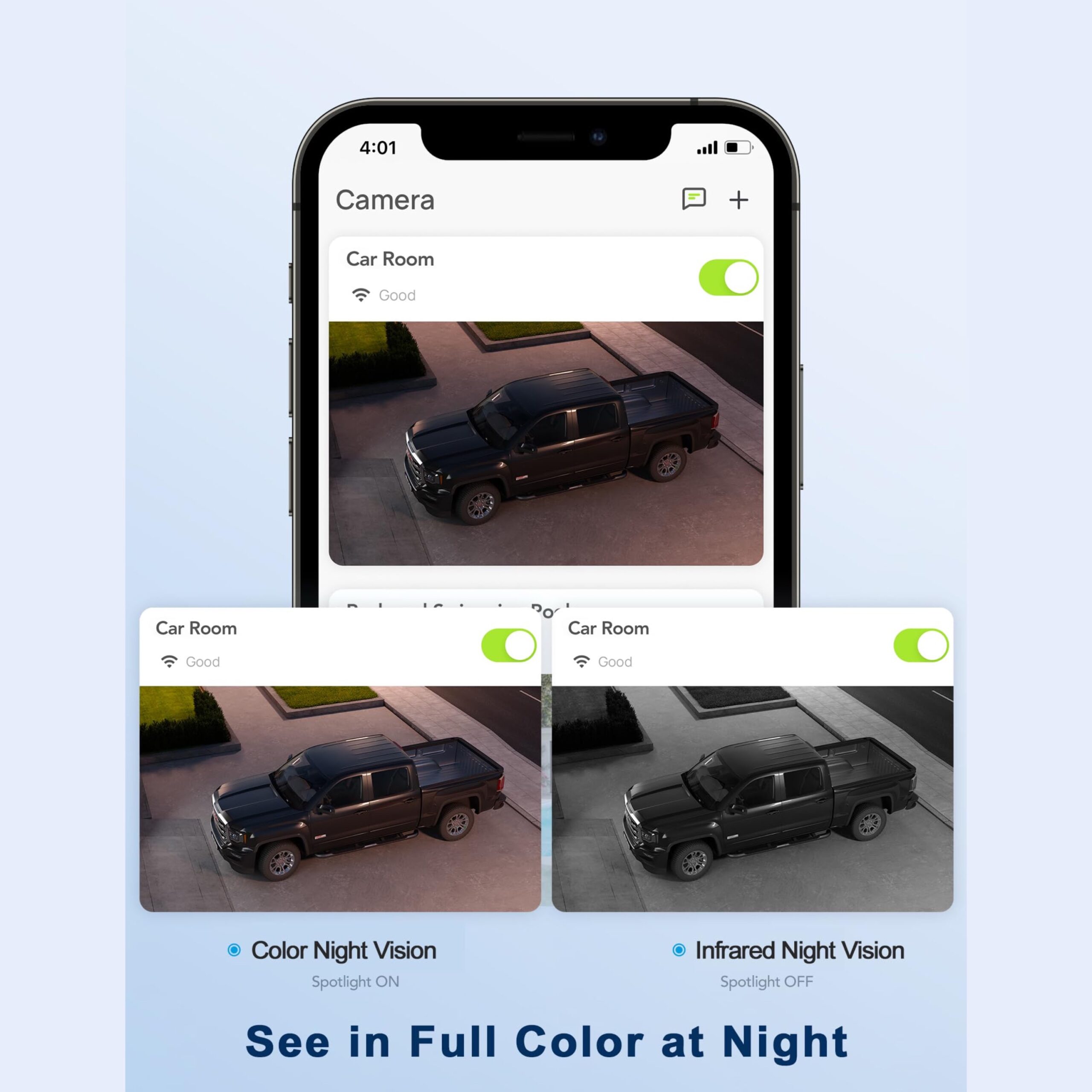 مزودة برؤية ليلية ملونة كاملة، تعمل بالأشعة تحت الحمراء مع أضواء كاشفة مدمجة، لتوفير صور واضحة وملونة حتى في الظلام الدامس، وبمدى رؤية يصل إلى 15 مترًا، ما يعزز الأمان الليلي بشكل كبير.