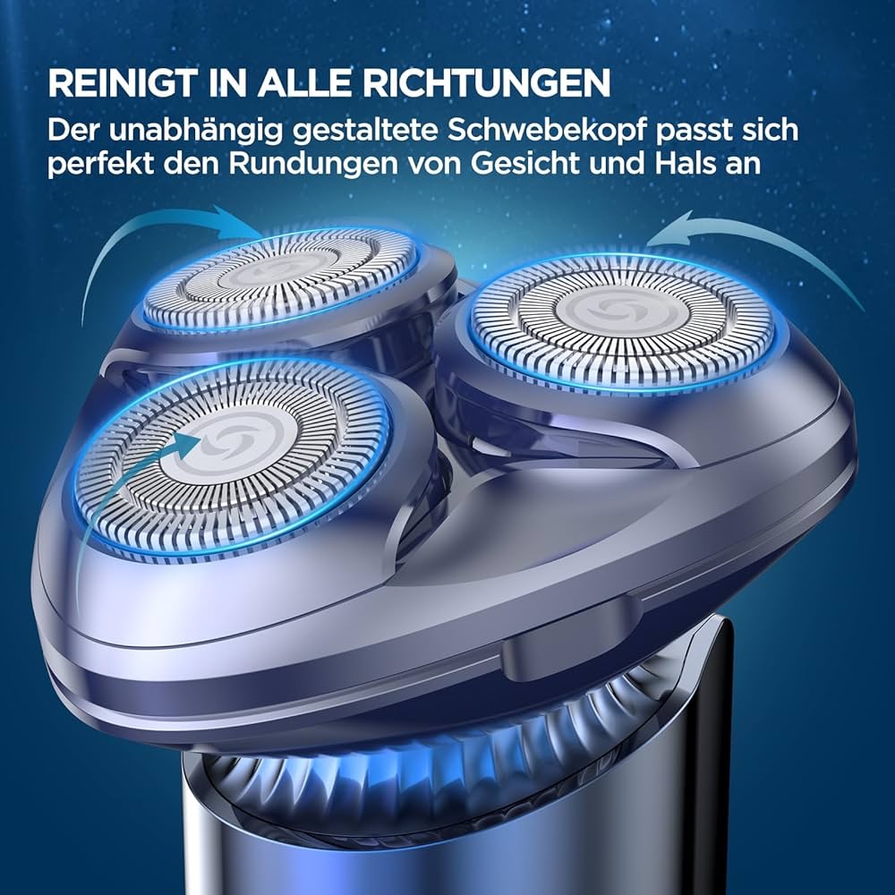 تأتي برأس ثلاثي الأبعاد عائم يستجيب لانحناءات الوجه، مما يمنح حلاقة دقيقة بدون مناطق فائتة ويضمن تماساً ثابتاً أثناء الاستخدام.