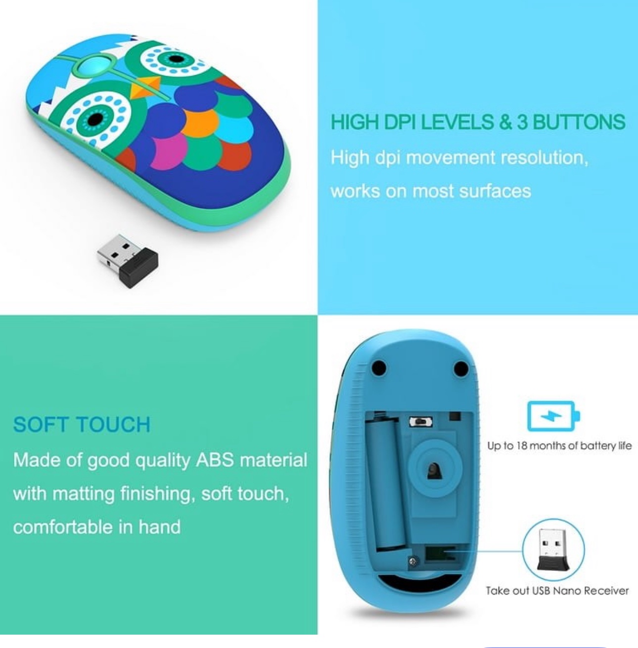 دقة حركة عالية 1600 DPI تعمل على معظم الأسطح