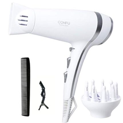 يتضمن المنتج فوهة تنعيم، فوهة تصفيف، وموزع هواء مخصص لتعزيز التموجات الطبيعية وتحديد التجعيدات، مما يجعله مناسبًا لجميع أنواع الشعر سواء الناعم أو المجعد. يمكن استخدامه في المنزل، الصالونات، الفنادق، والسفر بفضل وزنه الخفيف وسهولة حمله.