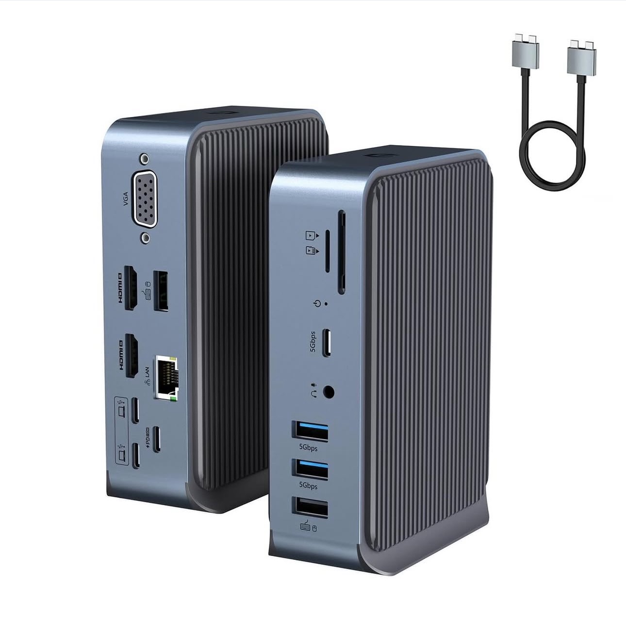 محطة إرساء USB-C HOPDAY 15 في 1 لشاشات متعددة وشحن سريع لأجهزة الكمبيوتر