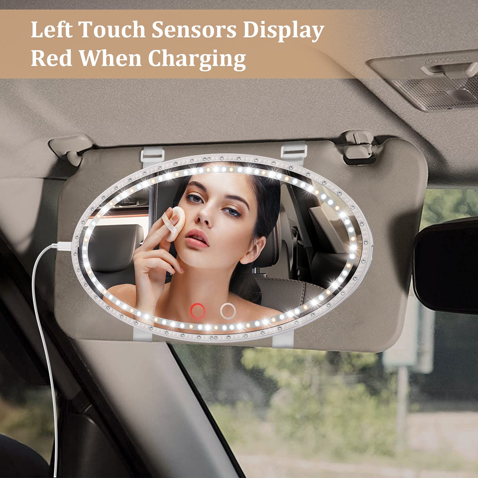 مرآة فانيتي للسيارة قابلة لإعادة الشحن من جيفاوا، 40 مصباح LED، ثلاثة أوضاع إضاءة ملونة، سهلة التركيب والطي، تصميم أنيق مع 46 حجر راين.