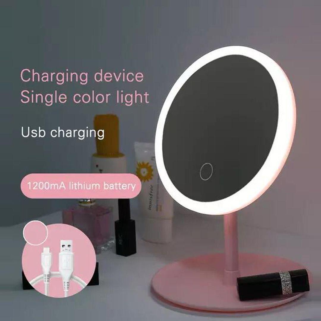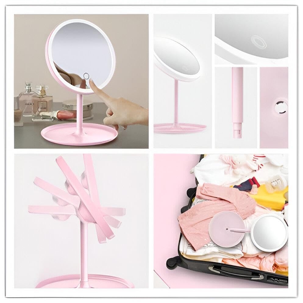 مرآة مكياج LED محمولة بوزن خفيف وتصميم قابل للدوران 90 درجة، مزودة بشاشة لمس للتحكم بالإضاءة و3 مستويات سطوع. تعمل عبر USB وببطارية 1200 مللي أمبير، مع صينية تخزين سفلية. مثالية للسفر والاستخدام اليومي بديكور أنيق.