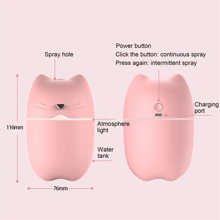 مرطب هواء محمول على شكل قطة بسعة 260 مل مع إضاءة ليلية USB هادئ