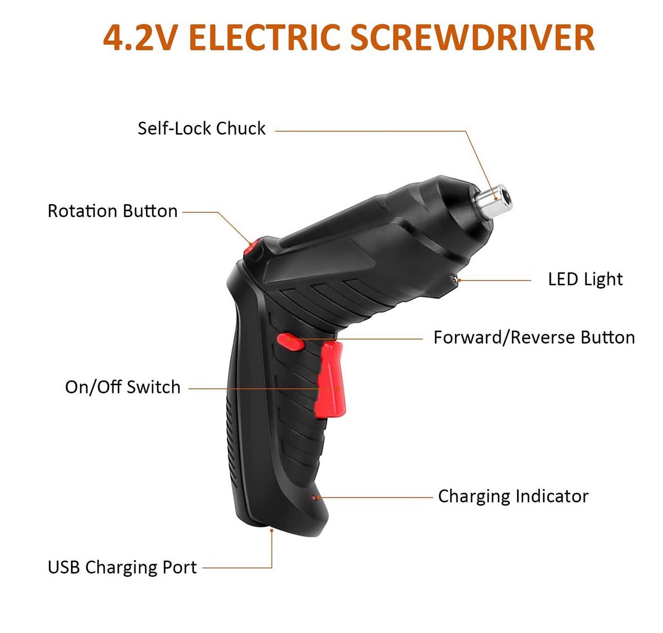 مفك براغي كهربائي متعدد الوظائف مع 46 قطعة ملحقات وبطارية قابلة للشحن