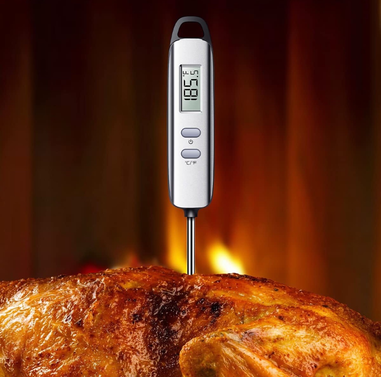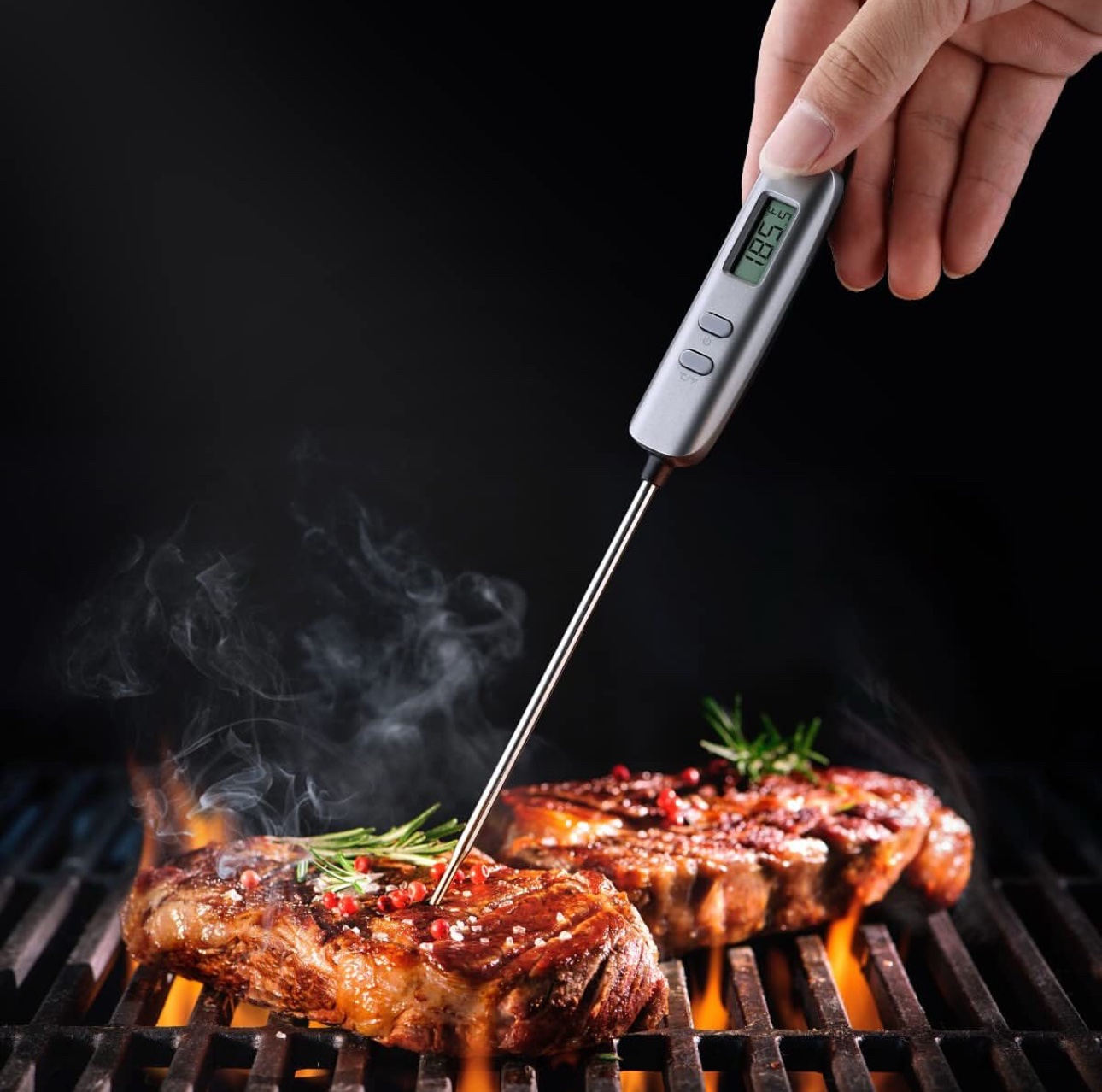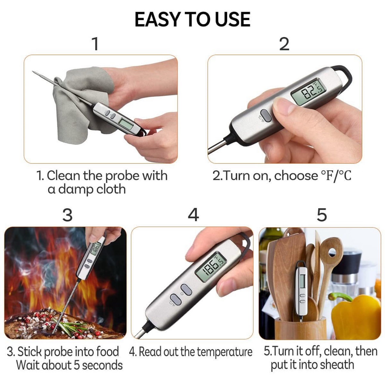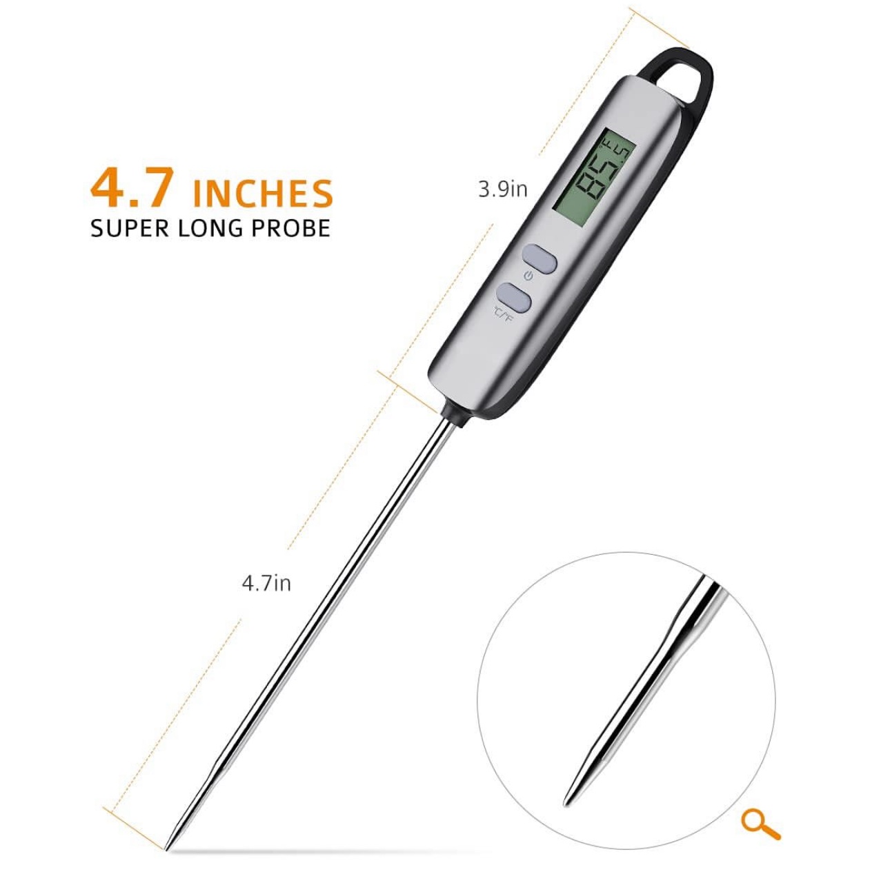 * 【مسبار طويل】: مسبار مقاس 4.7 بوصة ومصمم من الفولاذ المقاوم للصدأ بدرجة 304 الصحية للأغذية، يتجنب مقياس حرارة الطعام حرق يديك (لا تستخدم مقياس الحرارة أبدًا في فرن مغلق!)