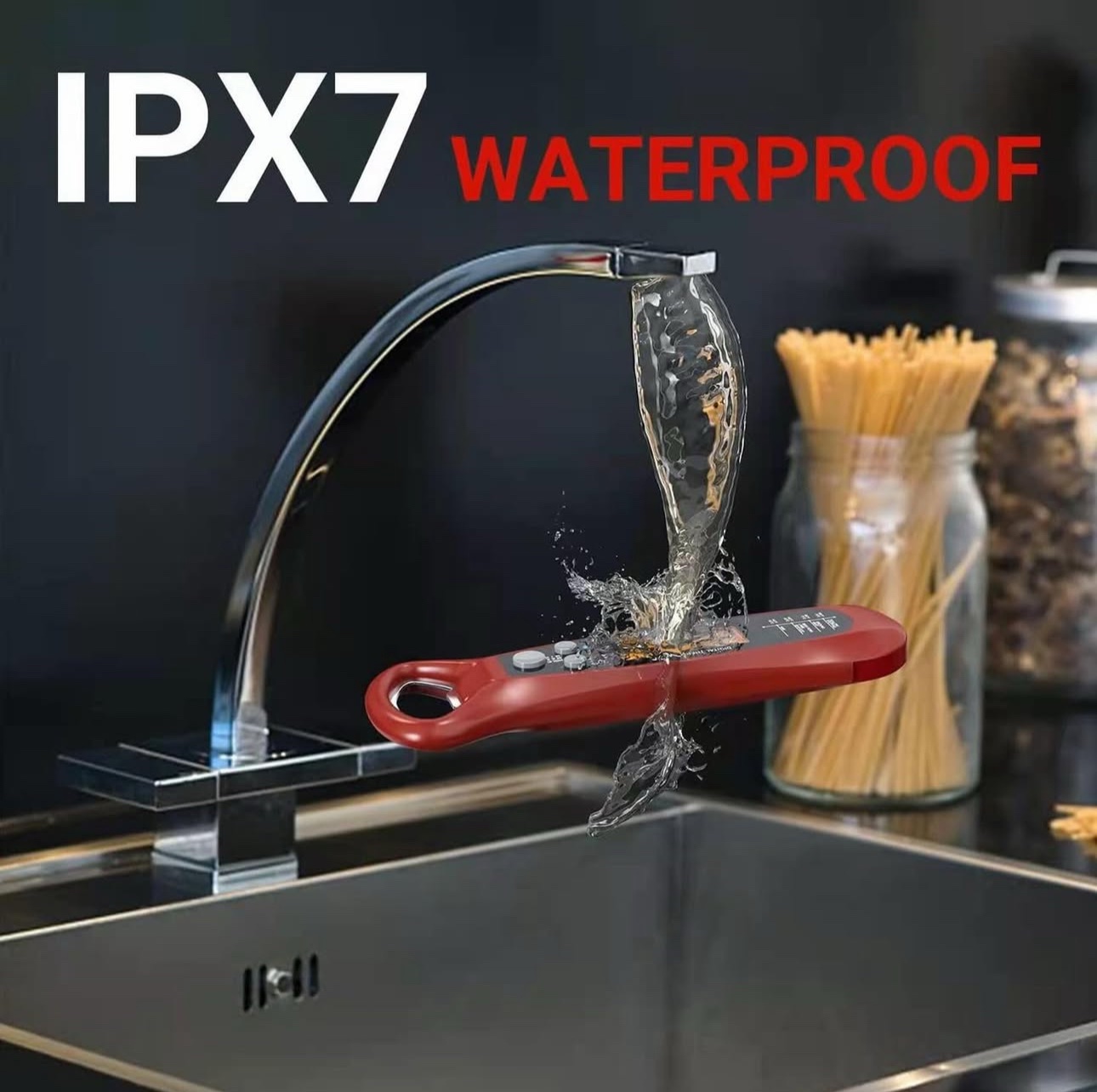 مقياس حرارة رقمي للحوم للطهي والشواء والخبز والسوائل والحلوى والقلي العميق، مع قراءة فورية في ثانيتين وشاشة LCD ومعايرة تلقائية ومقاومة للماء IPX6
