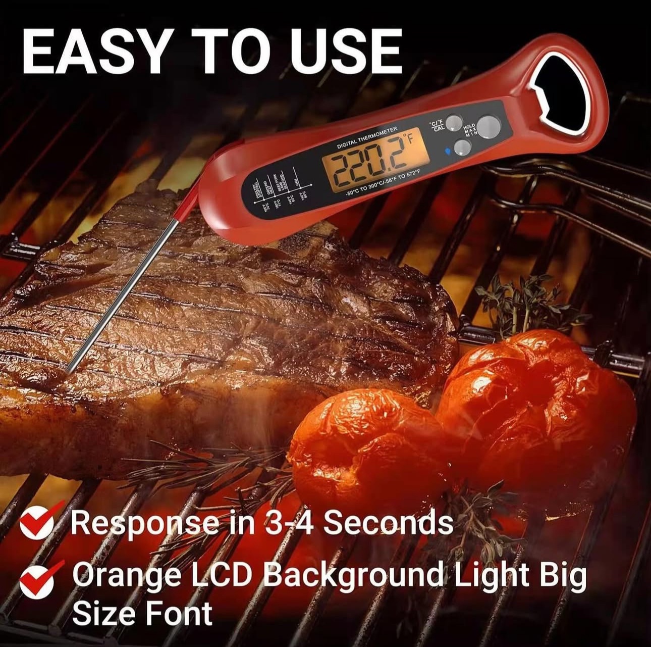 مقياس حرارة رقمي للطهي والشواء – قراءة فورية، شاشة LCD مقاوم للماء