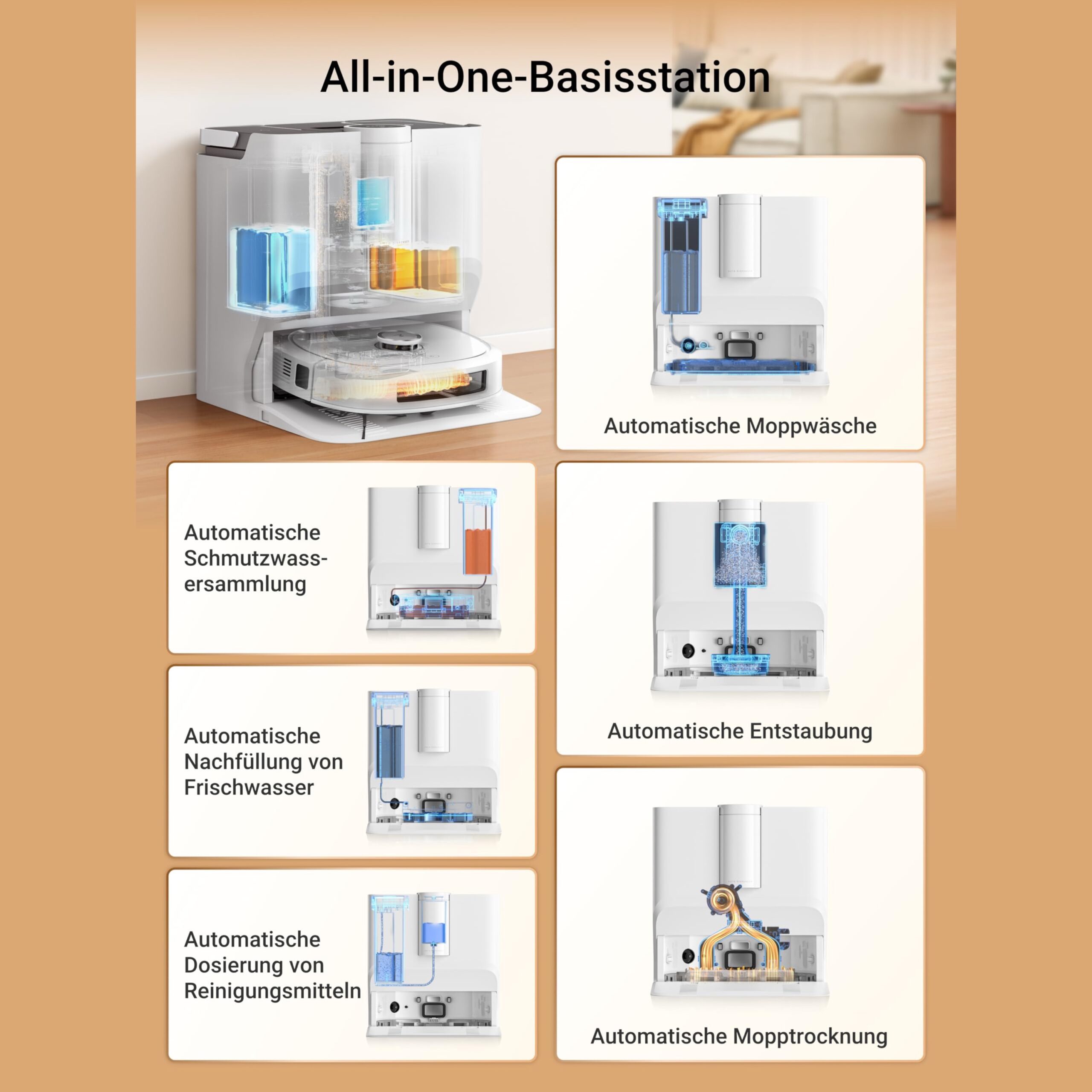• ذكاء اصطناعي لتجنب العوائق، الملاحة الدقيقة، وتنظيف السجاد بدون رطوبة.