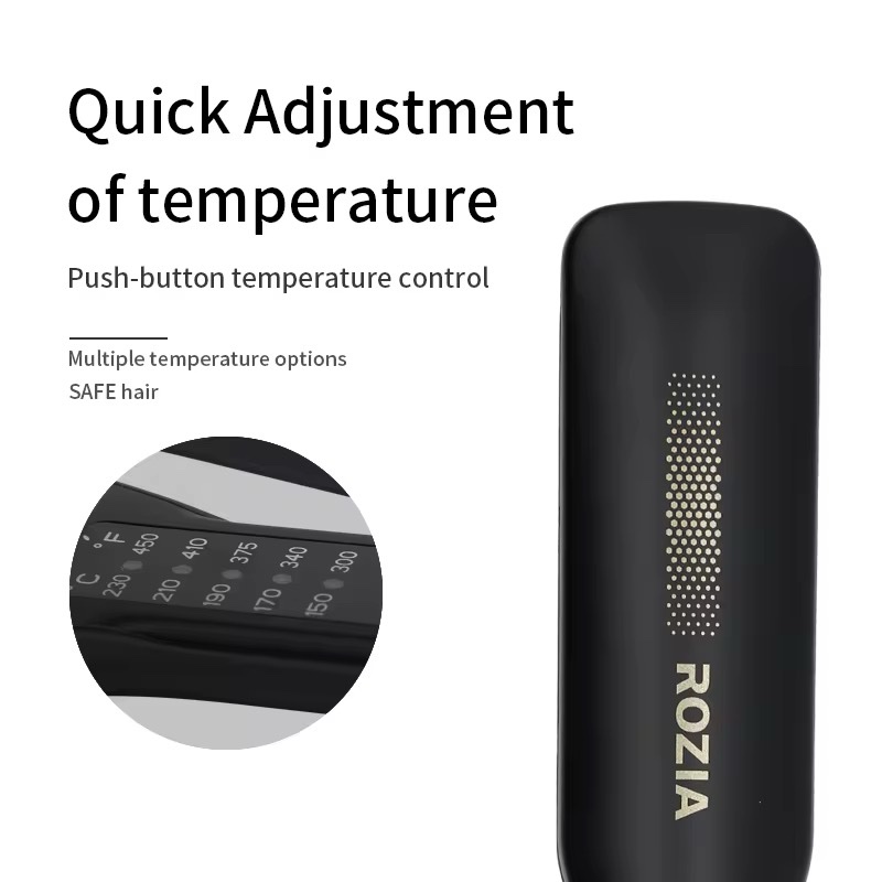 مكواة روزيا بلاك تمنحك تمليسًا سريعًا ونتائج احترافية بفضل ألواحها الخزفية الأيونية وتقنية التسخين الرقمي. توفر درجات حرارة متعددة تناسب جميع أنواع الشعر وتمنح نعومة ولمعانًا طبيعيًا مع حماية فائقة من التجعد والجفاف.