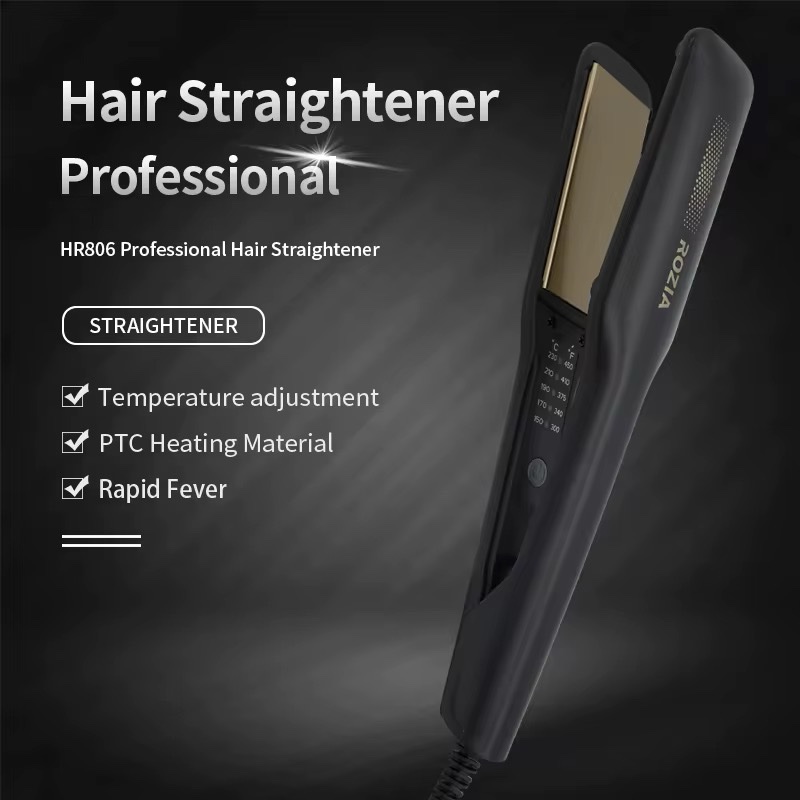 مكواة شعر روزيا بلاك الاحترافية الخزفية الأيونية بقدرة 40 واط لتنعيم مثالي سريع
