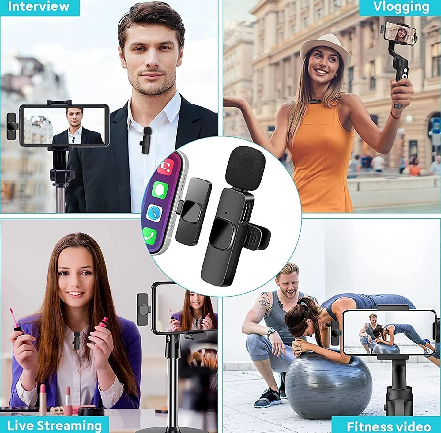 ميكروفون لاسلكي K8، ميكروفون رقمي صغير محمول بمشبك تسجيل مع جهاز استقبال لجميع الهواتف المحمولة I-PHONE Lightning والكاميرا والكمبيوتر المحمول للتدوين على YouTube والفصول الدراسية عبر الإنترنت ومكالمات Zoom