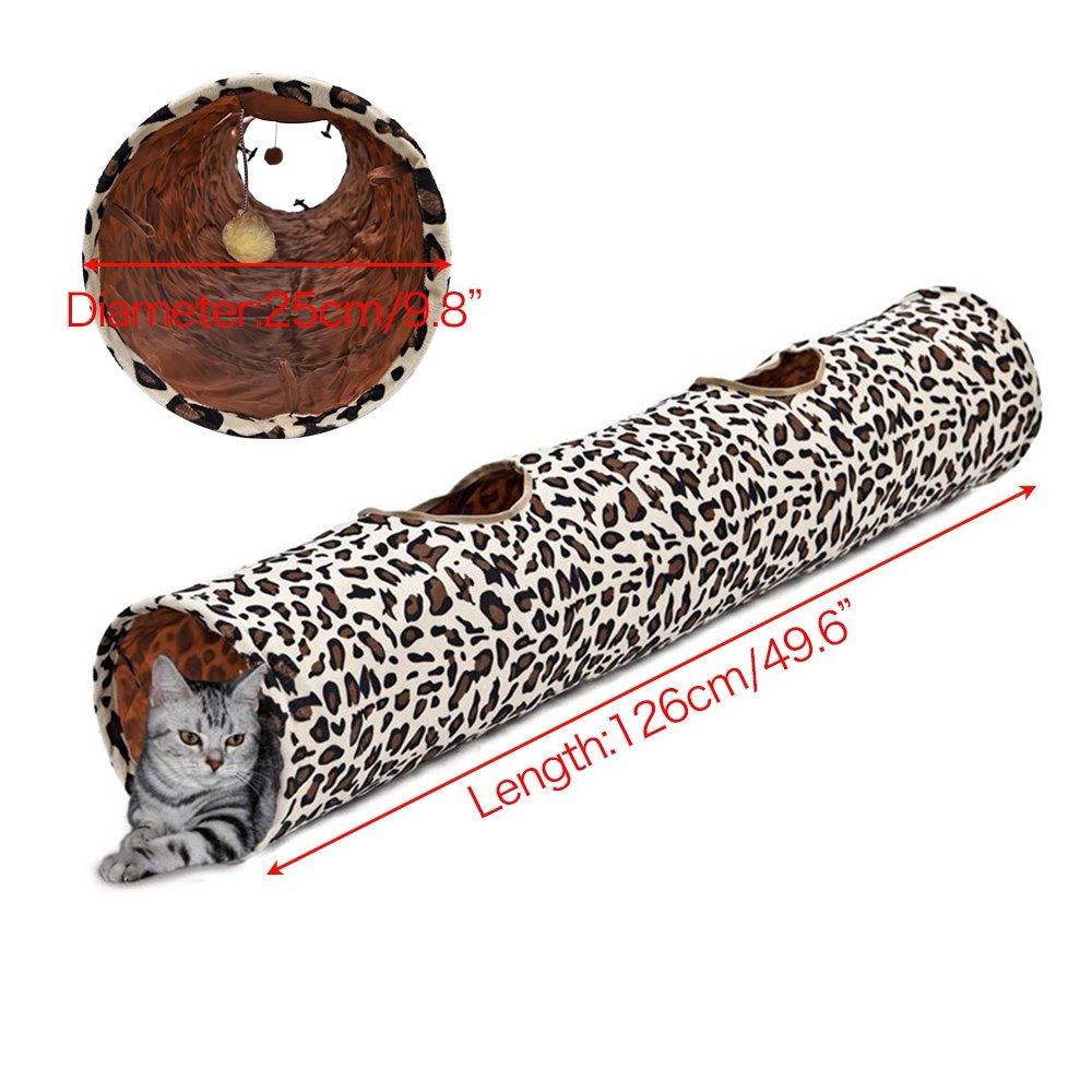 نفق لعب للقطط بتصميم جلد النمر الفاخر من PAWZ Road بطول 126 سم