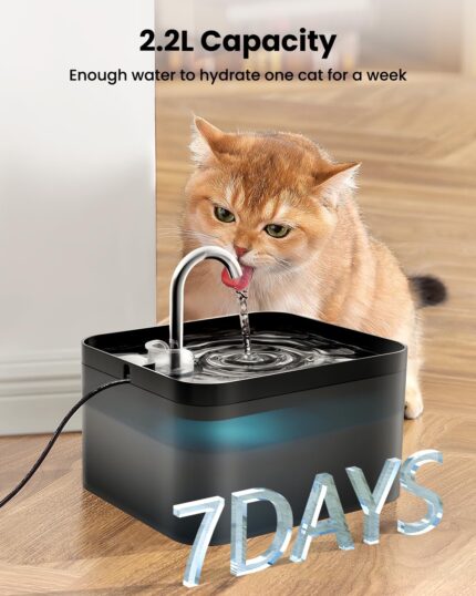 نافورة مياه للقطط 2.2 لتر من باوبول مع فلتر كربون نشط – صامتة