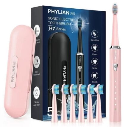 فرشاة أسنان كهربائية سونيك من فيليان مع 8 رؤوس و5 أوضاع تنظيف